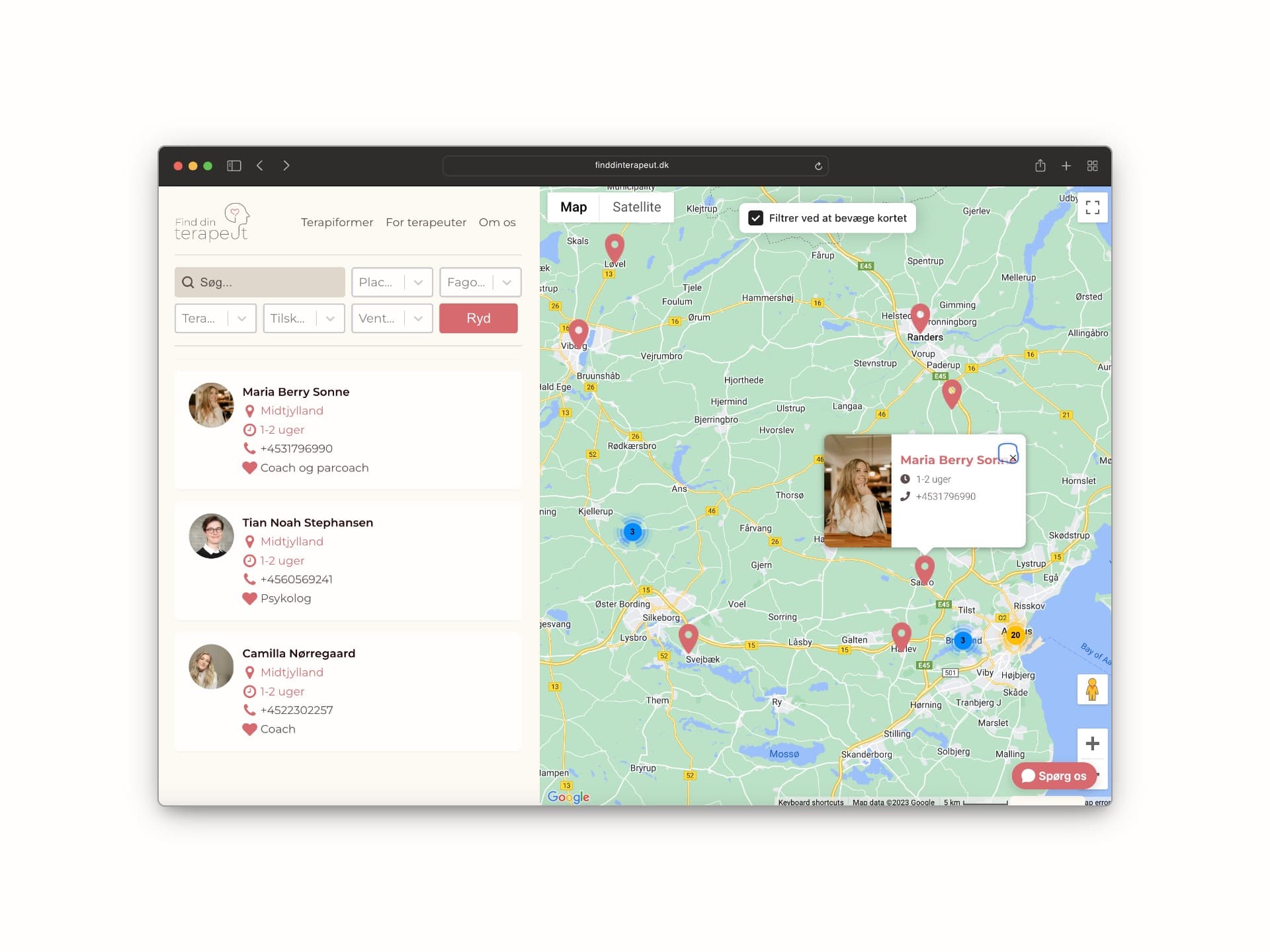Platform hvor terapeuter opretter offentlige profiler og bliver fundet af brugere, der søger specifikke typer af terapi og behandling.