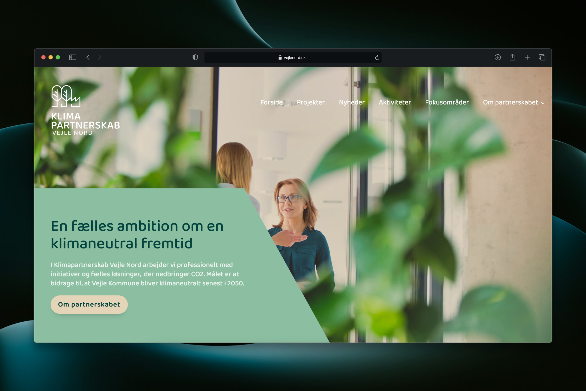 Fronten for klimapartnerskabet mellem Vejle Kommune og lokale virksomheder — et samarbejde om at opnå et CO2-negativt år 2050.